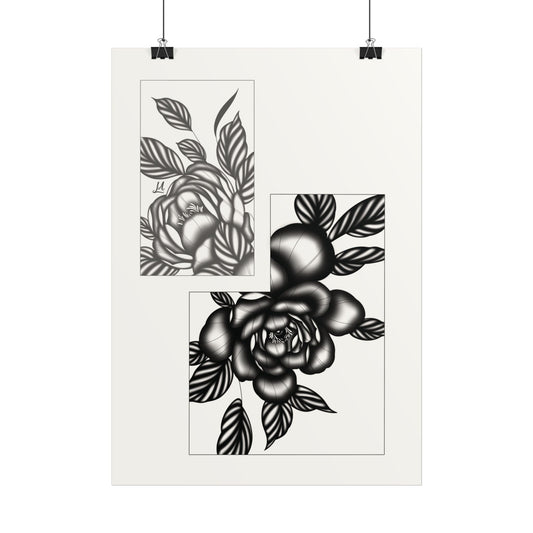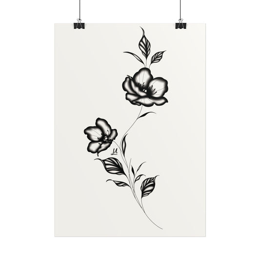 Black and white elegant flower artwork.