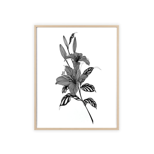 Elegant Floral Wall Art, Black and White Lily artwork - Framed.