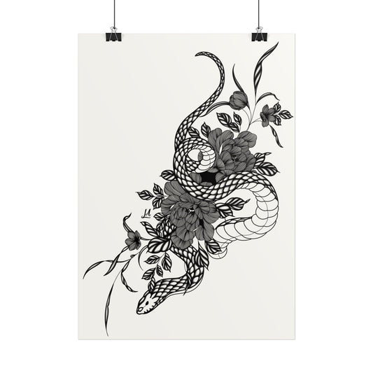 Botanical Serpent Wall Art, in black and white contrast shading.
