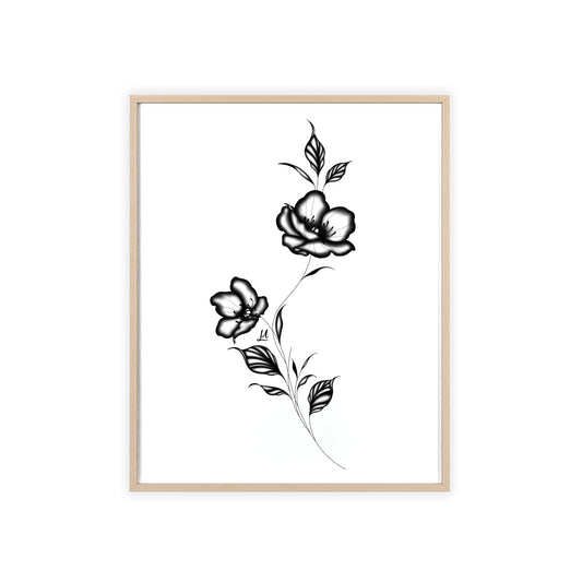 Black and white elegant flower artwork - Framed.