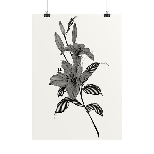 Elegant Floral Wall Art, Black and White Lily artwork.