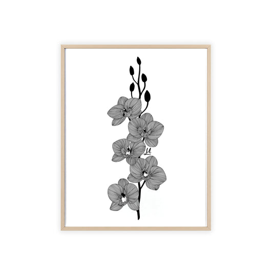 Elegant orchid line artwork - Framed.